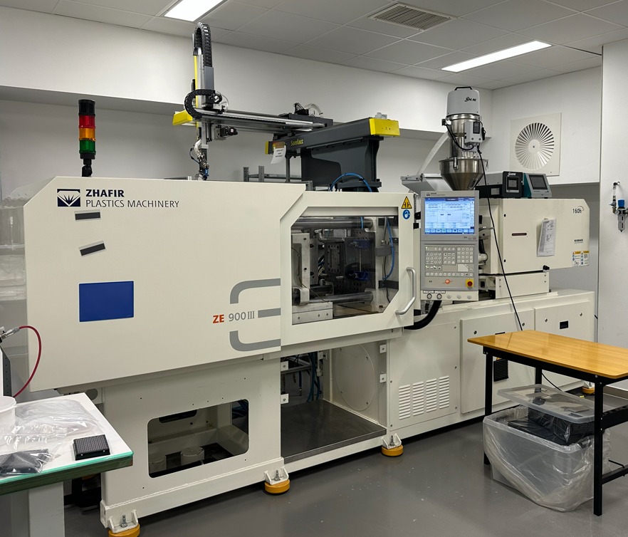 A tisztateres fröccsöntést ISO 8 minősítésű tisztatérben végezzük, ami biztosítja a por és szennyeződés-mentes gyártást. A tisztatérben kettő új generációs hibrid hajtású Haitian Zhafir fröccsgéppel dolgozunk. Ezek minden tekintetben megfelelnek a szigorú tisztateres követelményeknek